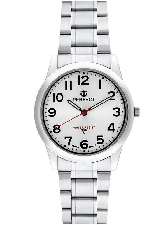Marka: Perfect Mechanizm: Kwarcowy Tarcza: Analogowa Koperta: Wysokogatunkowa stal Szkiełko: Mineralne Bransoleta: Stal szlachetna- regulowana Podświetlenie: Fluorescencja Wodoszczelność: 3 ATM