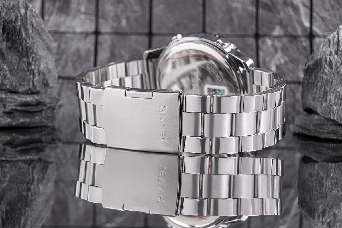 Bransolety zegarków Skmei wykonane z najwyższej jakości stali nierdzewnej, łączą w sobie surową wytrzymałość z elegancją, która przyciąga spojrzenia. Ich solidna konstrukcja to nie tylko symbol niezawodności, ale też pewność, że zegarek będzie trzymać się mocno na nadgarstku, bez względu na wyzwania dnia. Precyzyjne, bezpieczne zapięcie z detalem logo Skmei dodaje całości klasy i wyjątkowego charakteru, tworząc bransoletę, która jednocześnie podkreśla siłę i styl – bez kompromisów.