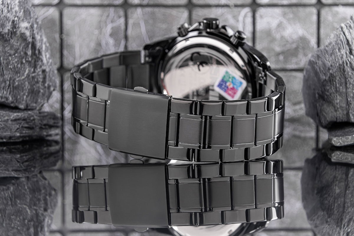 Zastosowana w zegarku powłoka fluorescencyjna na wskazówkach i indeksach umożliwia łatwy odczyt godziny po zmroku. Dzięki fluorescencji zegarek pochłania światło w ciągu dnia, by po zmroku emitować delikatny blask, ułatwiając odczyt czasu bez konieczności dodatkowego podświetlenia. To praktyczne rozwiązanie dla mężczyzny, który ceni funkcjonalność i wygodę niezależnie od warunków oświetleniowych.