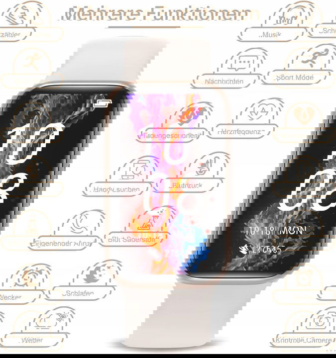 [Inne praktyczne funkcje] Smartwatch dla kobiet i mężczyzn ma jeszcze inne specjalne funkcje, takie jak np. stoper, timer, muzyka, latarka, fotografia, budzik, zdrowie kobiet, szukanie telefonu komórkowego, znalezienie zegarka itp.