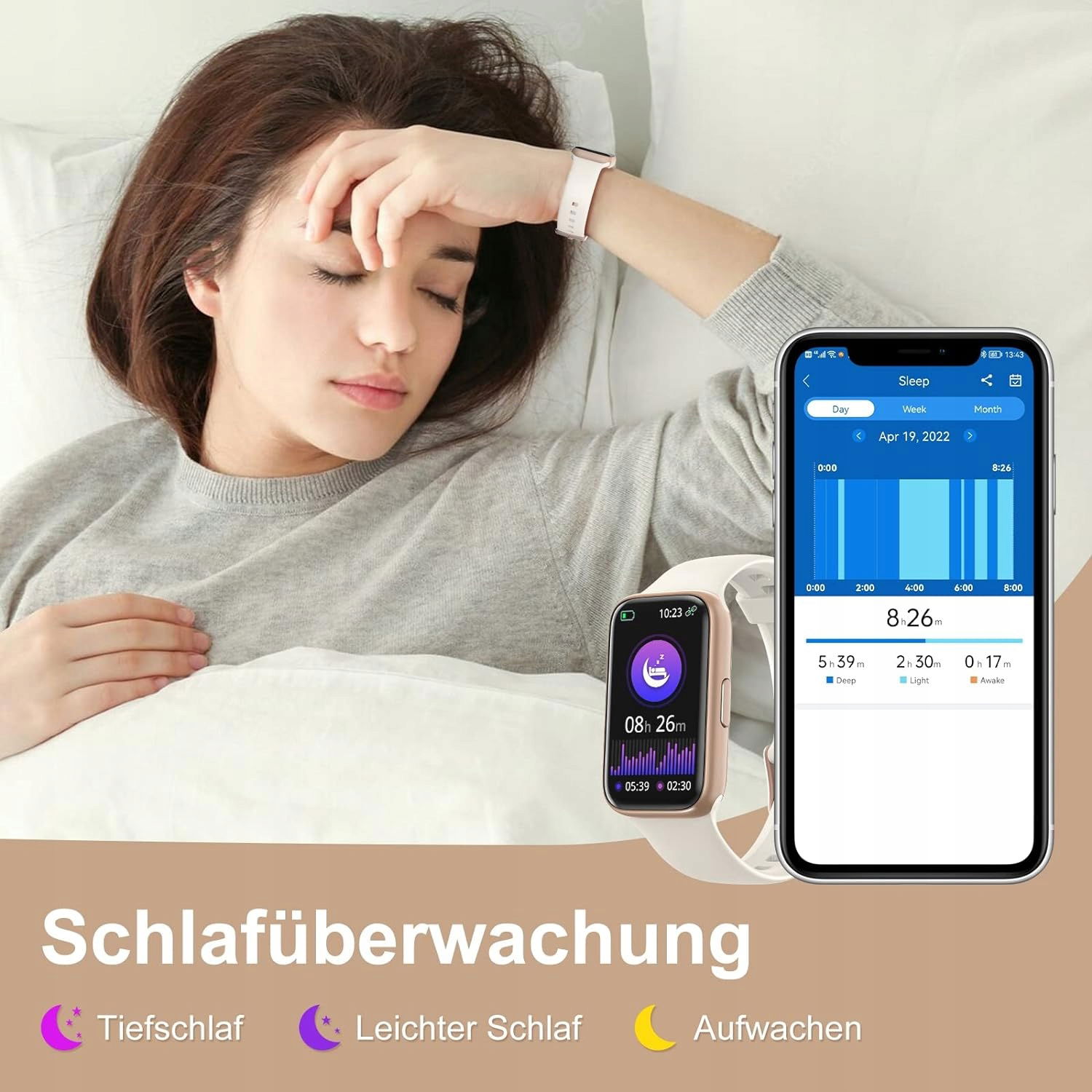 [Naturalny monitor snu] Między 20:00 a 12:00 zegarek fitness automatycznie monitoruje Twój sen podczas snu. Dzięki danym o głębokim i lekkim śnie możesz lepiej zrozumieć swoją sytuację podczas snu. Nawet jeśli budzisz się w nocy, możesz włączyć latarkę bezpośrednio na smartwatchu, aby się chronić.