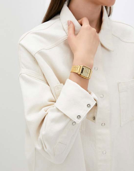 Zegarek unisex Casio AQ-230GA-9DMQYES to idealne połączenie klasycznego stylu z nowoczesnymi funkcjami, które z pewnością przypadną do gustu zarówno kobietom, jak i mężczyznom. Jego złoty kolor paska oraz tarczy sprawia, że jest to elegancki dodatek, który doskonale uzupełni każdą stylizację, od casualowych po bardziej formalne okazje. Prostokątna tarcza z analogowo-cyfrowym wyświetlaczem ukazuje precyzyjny mechanizm kwarcowy, a akrylowe szkło zapewnia trwałość i odporność na zarysowania.