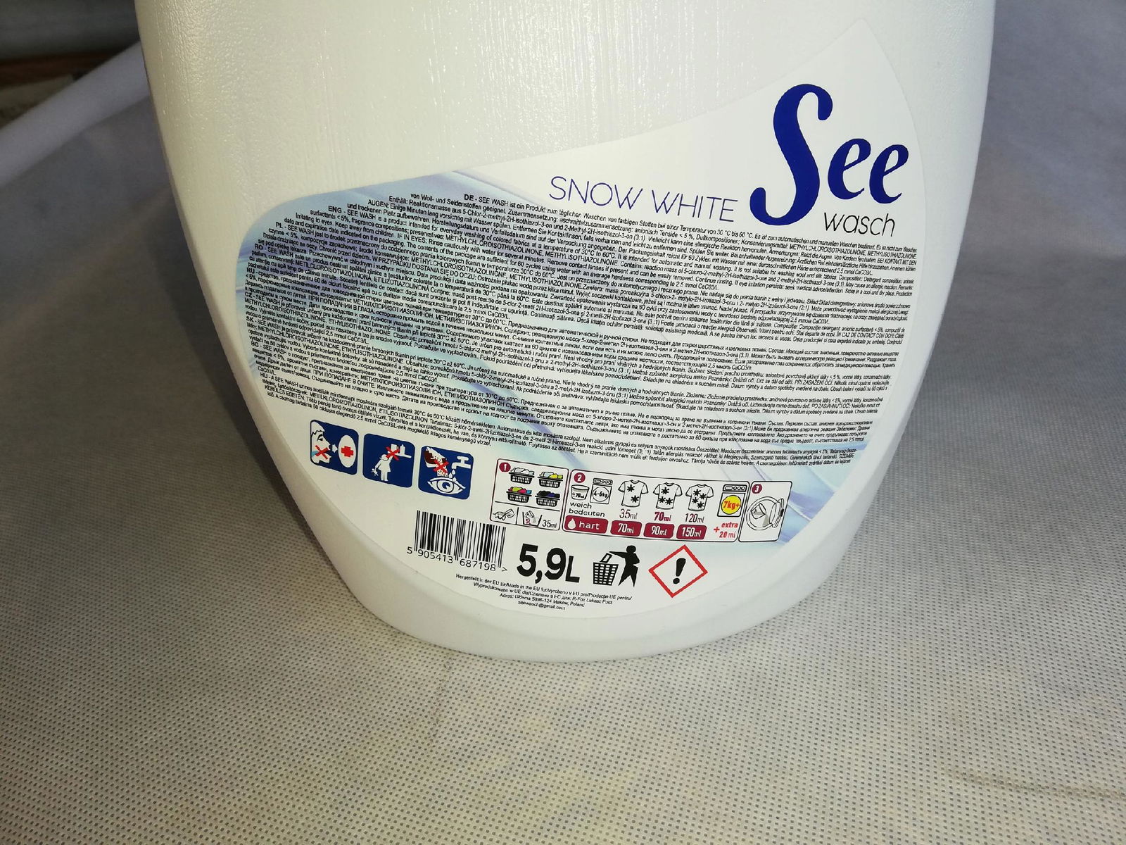 Odkryj sekret doskonałego prania z See Wasch - naszym żelem o pojemności 5,9 litra, zaprojektowanym specjalnie do tkanin białych, znanych jako Snow White. To oferta roku dla tych, którzy pragną doskonałego rezultatu, wydajności oraz najlepszej jakości. Nasz innowacyjny system „dwa w jednym” to połączenie płynu do prania i odświeżacza tkanin, a oferta skierowana jest szczególnie do zakupów hurtowych.