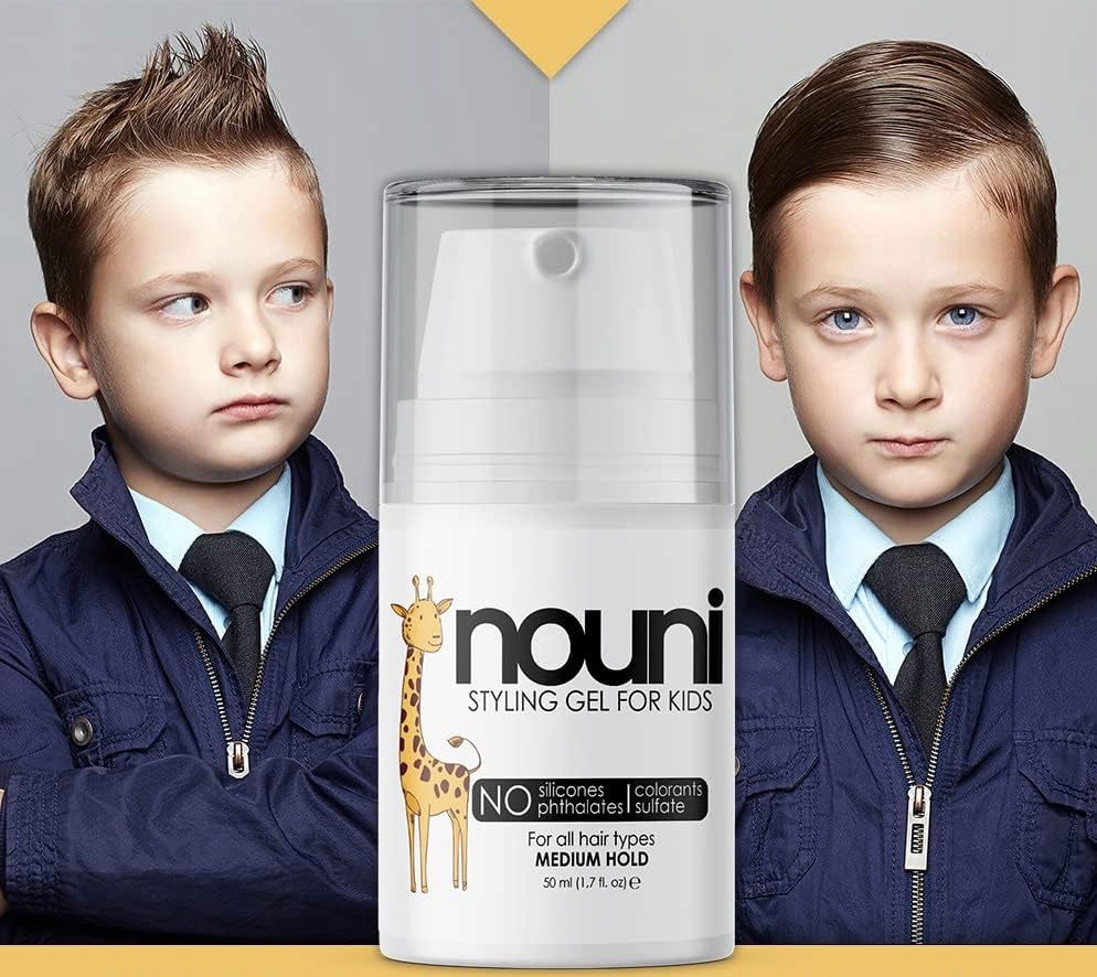 Nouni kids żel do włosów dla dzieci, bez parabenów, silikonów, barwników, wegański, Made in Germany, żel do stylizacji wszystkich rodzajów włosów, nouni kids, 50 ml �?