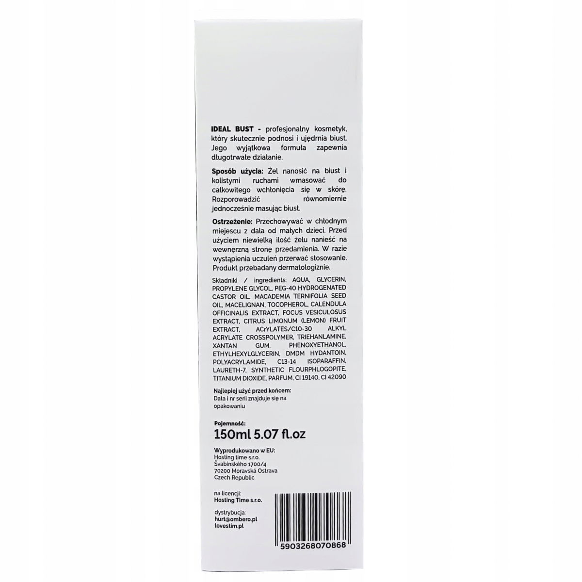 Ideal Bust to całkowita nowość LoveStim w temacie uczynienia Twoich piersi idealnymiNowoczesna formuła tego preparatu czyni go profesjonalnym kosmetykiem którego zadaniem jest podniesienie i ujędrnienie biustu, tak by wyglądał jak dawniej. Dodatkowo marce LoveStim udało się uzyskać efekt powiększenia. To wszystko dzięki nowoczesnym składnikom i idealnie dobranym proporcjom.Żel Ideal Bust 150ml ma za zadanie: Podnieść piersi Ujędrnić biust Uczynić skórę piersi bardziej napiętą Skóra pod wpływem stosowania żelu stanie się jedwabiście delikatna Specjalnie opracowana technika użycia w połączeniu z tym składem poprawi ukrwienie w piersiach co za tym idzie pobudzi naturalną regenerację i proces powiększania piersi.