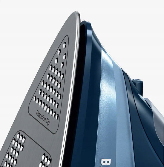Innowacyjna stopa FreeGlide 3D z zaokrąglonymi krawędziami i ściętymi brzegami, umożliwia sprawne operowanie żelazkiem we wszystkich kierunkach, bez marszczenia materiału.