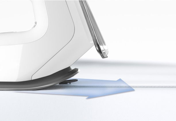Precyzyjny wyrzut pary z czubka żelazka umożliwia łatwe rozprasowanie najtrudniejszych zagnieceń w trudno dostępnych miejscach, takich jak kołnierze czy szwy.