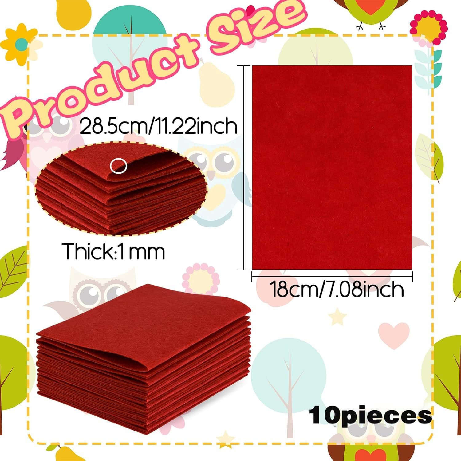 - 10 arkuszy wysokiej jakości czerwonego filcu, każdy o wymiarach 7 x 11 cali (18 x 28,5 cm)
