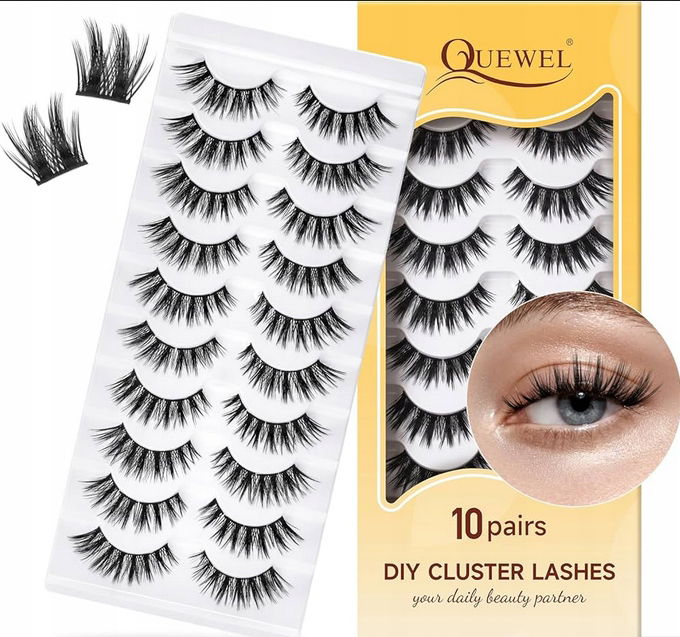 Zestaw 10 par naturalnie zakręconych rzęs QUEWEL o długości 14 mm