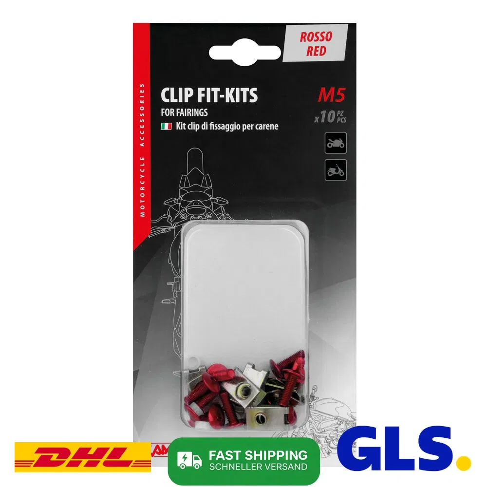 Zestaw 10 sztuk mocowań owiewek i plastików motocyklowych (każde mocowanie zawiera śrubkę, podkładki i blaszkę mocującą)Anodowane aluminium. Idealne do owiewek I plastików motocyklowych.