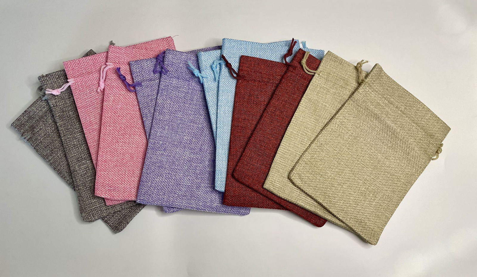 Zestaw 12 woreczków z juty różne kolory ze ściągaczem 13 x 18 cm