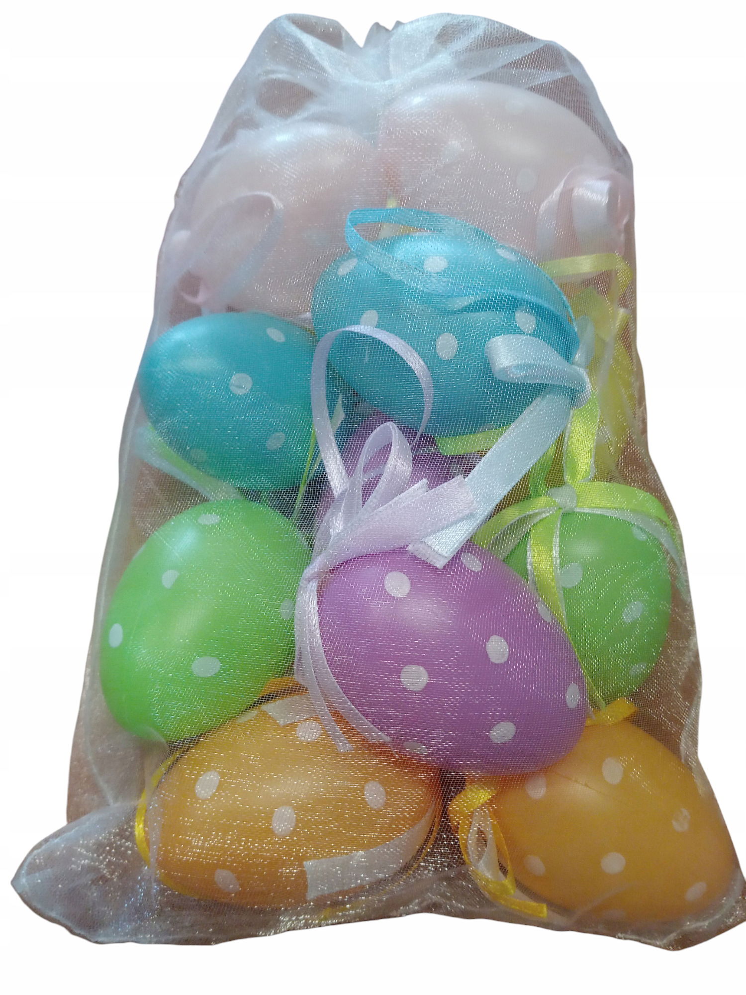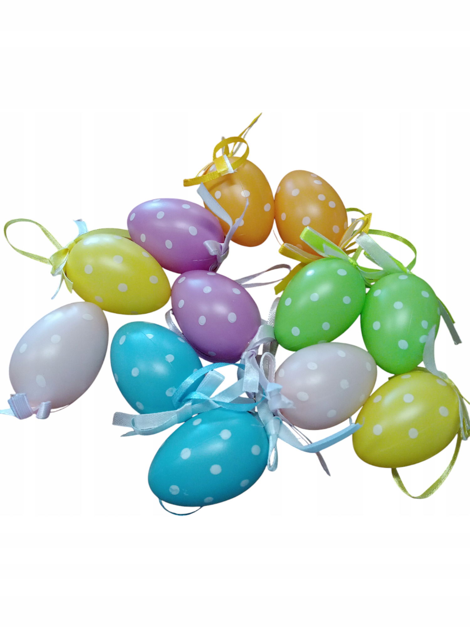 Zestaw 12 Kolorowych Pastelowych Jajek Zawieszek Pisanek w Białe Kropki
