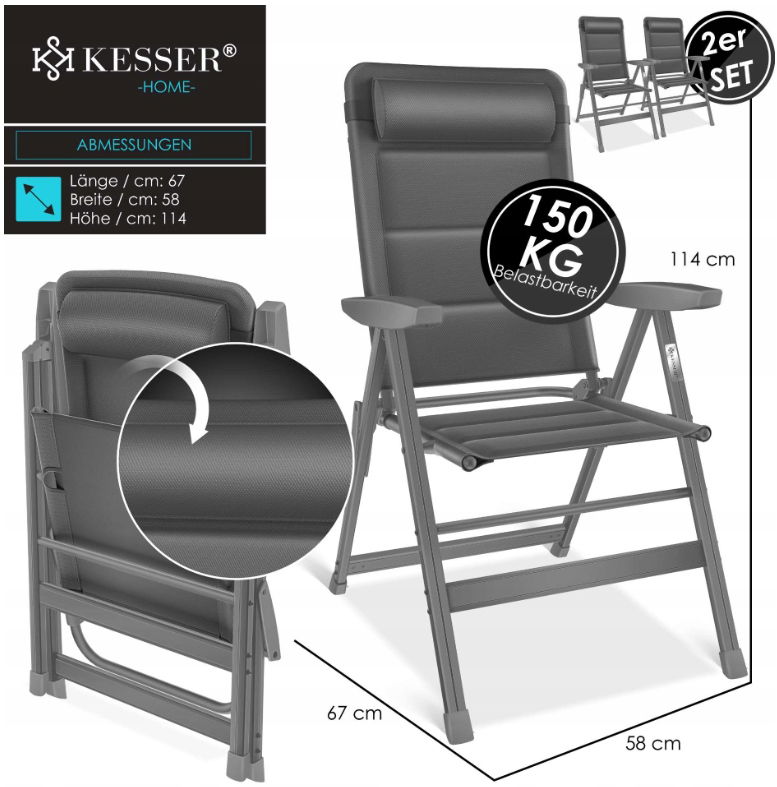 - ➡️ Wykonane z wysokiej jakości Textilene , materiału szczególnie trwałego i odpornego na warunki atmosferyczne , składane krzesło KESSER zapewnia nie tylko doskonały komfort , ale także długą żywotność . Malowana proszkowo aluminiowa rama zapewnia stabilność i wytrzymałość , a funkcja łatwego składania pozwala na szybkie i oszczędzające miejsce przechowywanie .