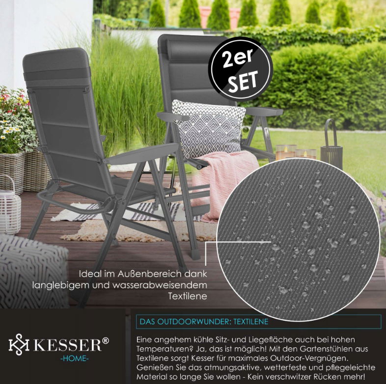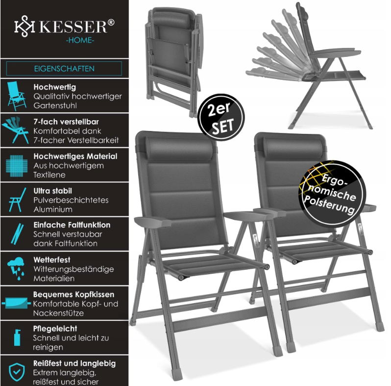 - ➡️ Krzesło tarasowe KESSER zostało zaprojektowane tak, aby przenieść Twoje doznania na świeżym powietrzu na nowy poziom. Oparcie regulowane w 7 kierunkach pozwala znaleźć idealną pozycję zapewniającą maksymalny relaks , niezależnie od tego, czy chcesz usiąść, położyć się, czy odchylić się do tyłu. Ta wszechstronność czyni go idealnym towarzyszem przytulnych godzin w ogrodzie , na tarasie lub balkonie .