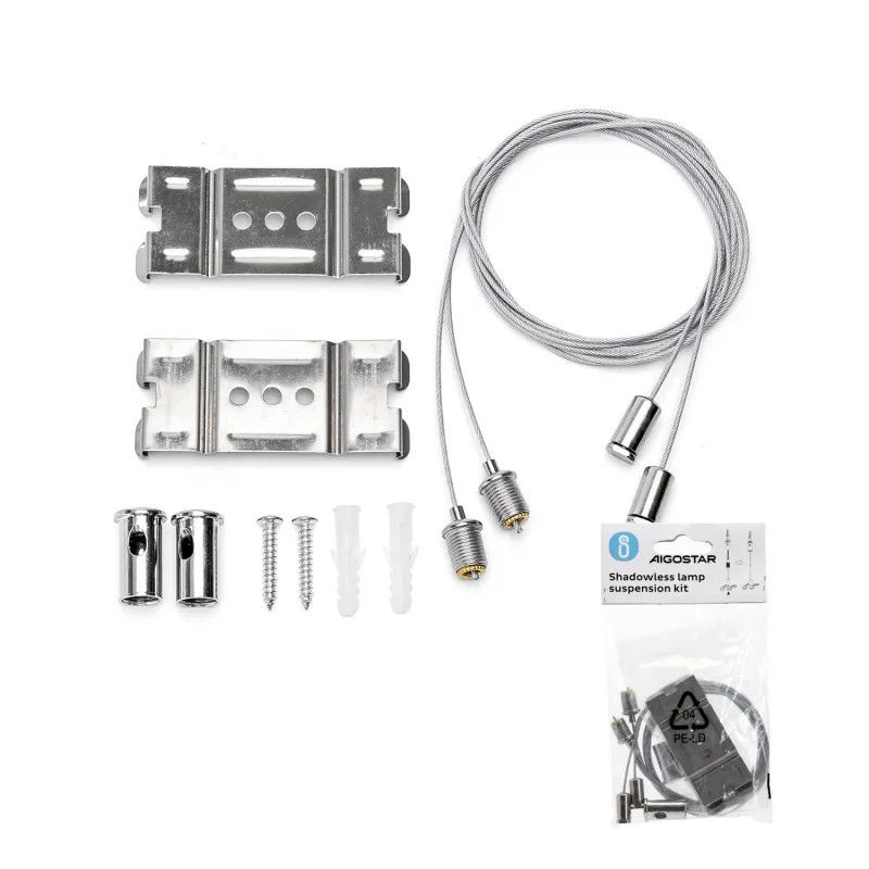 Zestaw do zawieszania opraw oświetleniowych led łączonych bez cieniowo. W zestawie elementy przeznaczone do zawieszenia oprawy w oparciu o dwa punkty mocowania do sufitu (w skrócie => zestaw dwóch linek...).