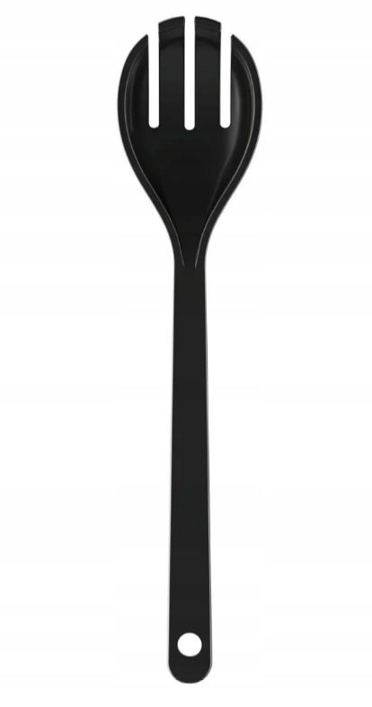 Zestaw dwóch dużych łyżek sałatkowych w kolorze czarnym to praktyczne i eleganckie rozwiązanie do codziennego użytku. Wykonane z wytrzymałego tworzywa sztucznego bez BPA, są bezpieczne w kontakcie z żywnością. Można je myć w zmywarce, co ułatwia utrzymanie czystości.