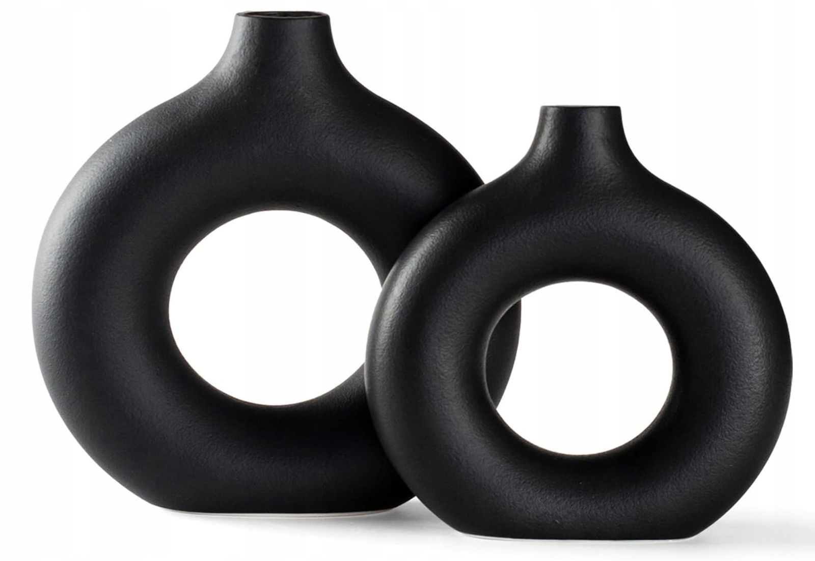 Zestaw 2 nowoczesnych wazonów ceramicznych CEMABT - czarne
