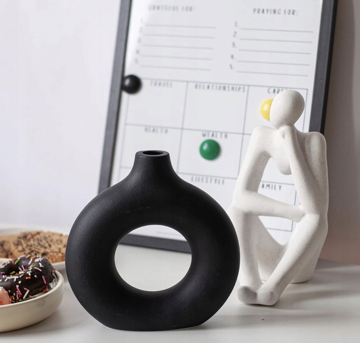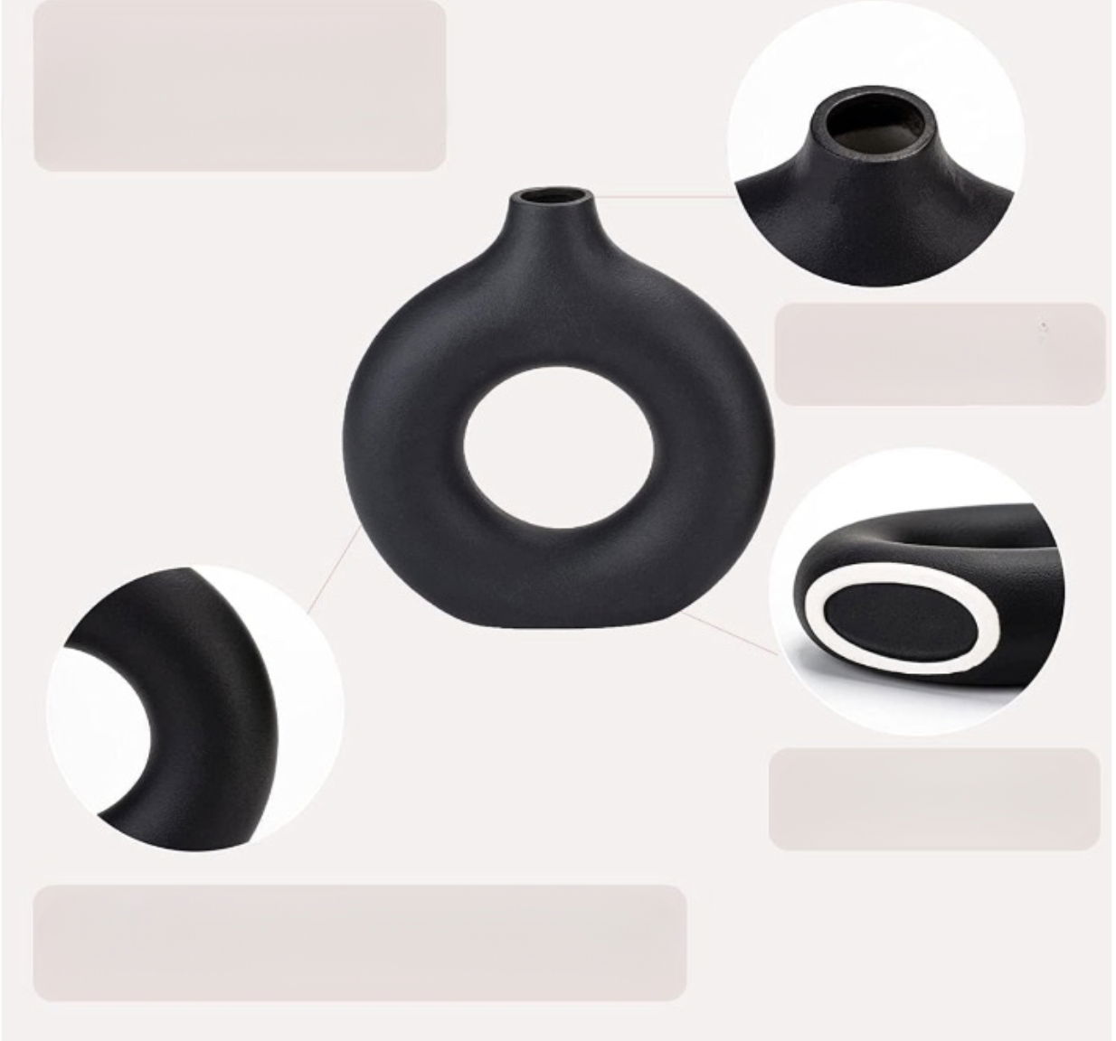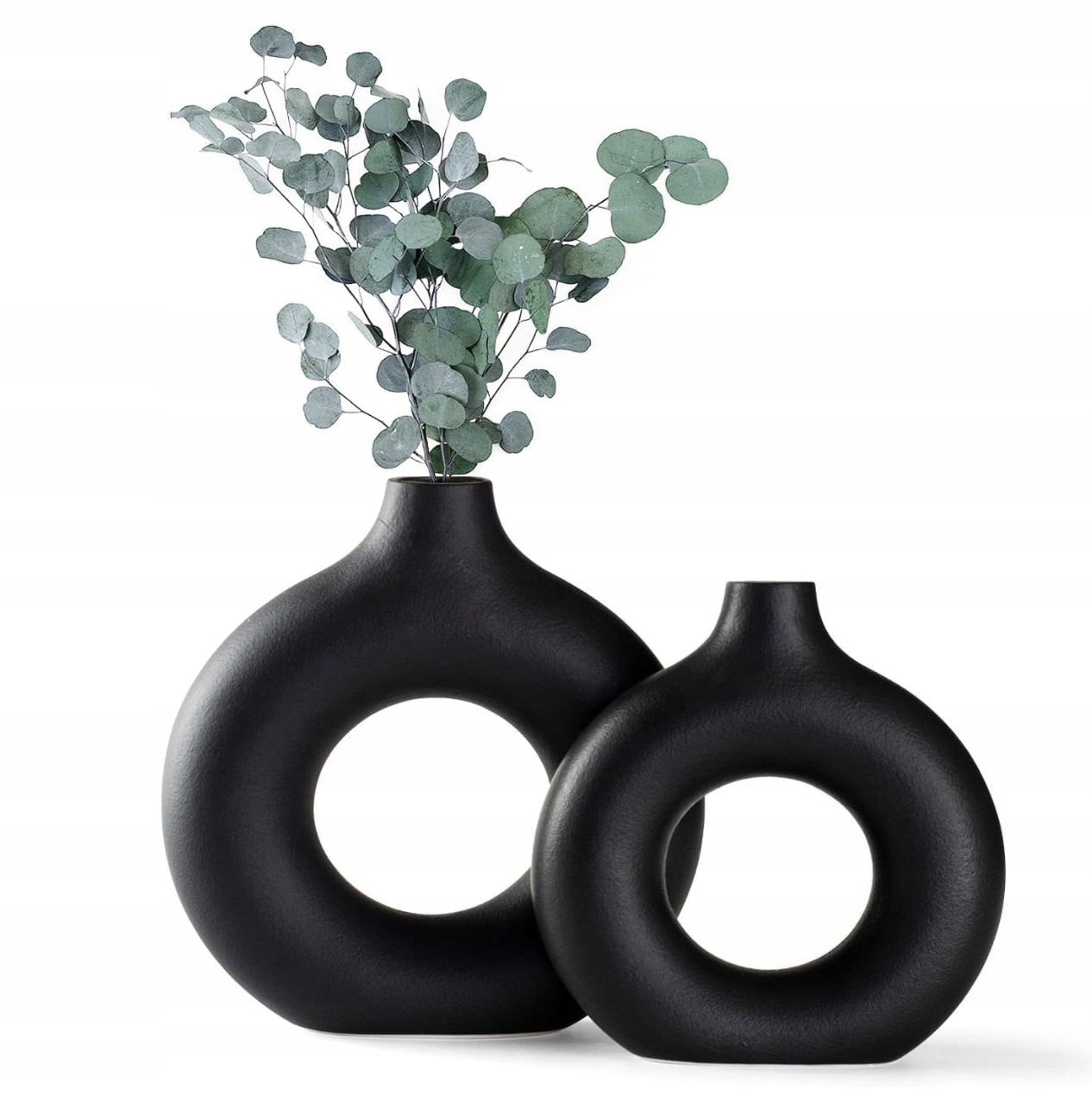 Matowy czarny wazon o pięknej fakturze wykonany jest z wysokiej jakości trwałej ceramiki. Wazon ma szorstki, matowy wygląd i wygląda bardzo elegancko.