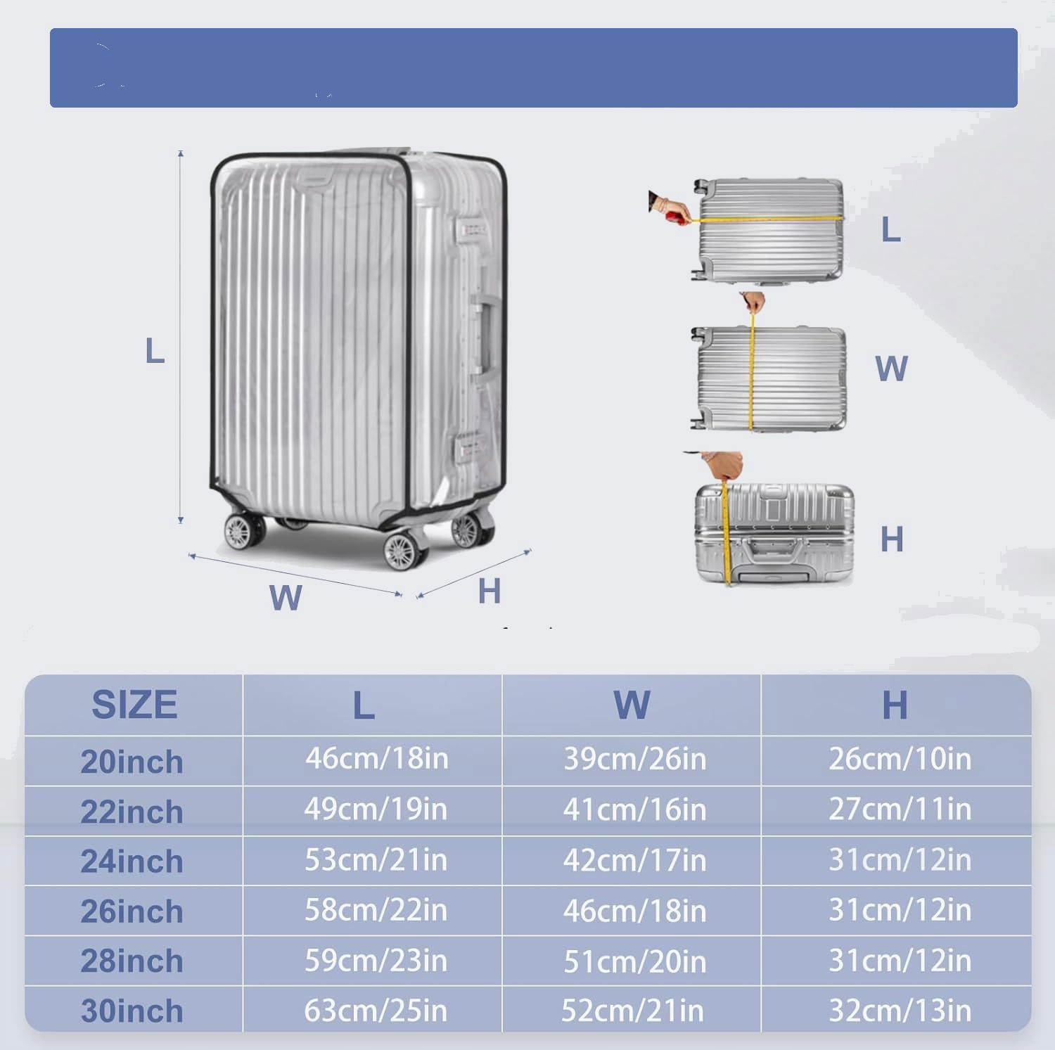 Trwały i elastyczny materiał: Wykonany z wysokiej jakości, wodoodpornego tworzywa PVC, które skutecznie chroni walizkę przed deszczem, kurzem, zadrapaniami i innymi uszkodzeniami mechanicznymi
