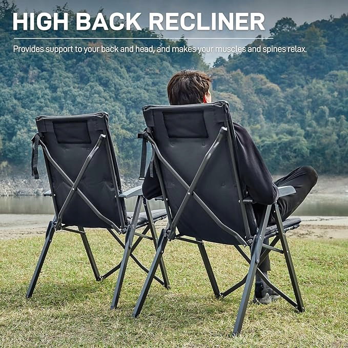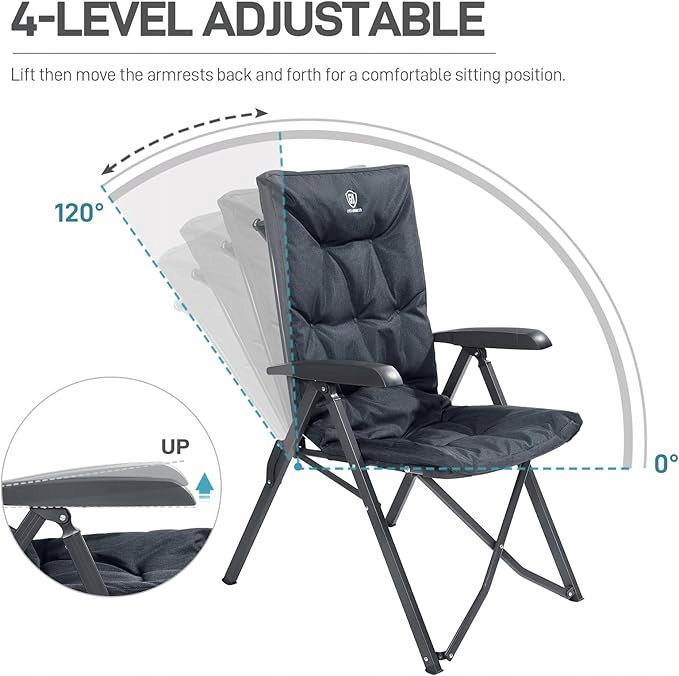 EVER ADVANCED Luksusowe krzesła kempingowe, 2 zestawy dla dorosłych, wytrzymałe, wysokie oparcie, ponadwymiarowe, składane krzesło ogrodowe, wygodne, wyściełane, 6 cm, ładowalne, 150 kg, regulowane