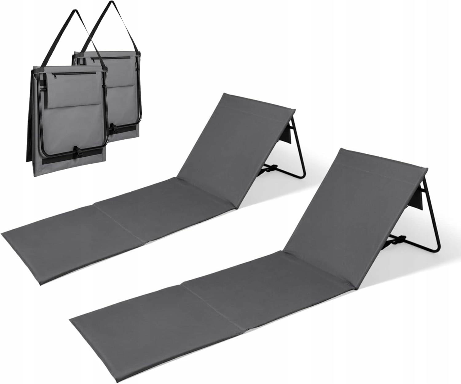 Intimo Living Zestaw 2 mat plażowych z regulowanym oparciem – maty plażowe wypełnione pianką komfortową są ultralekkie i zajmują mało miejsca, składane – szare