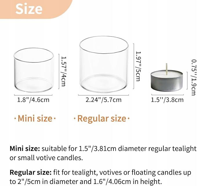 - 【Wszechstronny świecznik】Szklany świecznik NUPITO to wszechstronny dodatek, który jest dostępny w dwóch różnych rozmiarach, normalny rozmiar ma szerokość 5,7 cm x wysokość 5 cm, podczas gdy mini rozmiar mierzy 4,6 cm szerokości x 4 cm wysokości. Nadaje się do zwykłych podgrzewaczy, pływających świec lub świec wotywnych. Należy pamiętać, że świece nie wchodzą w zakres dostawy.