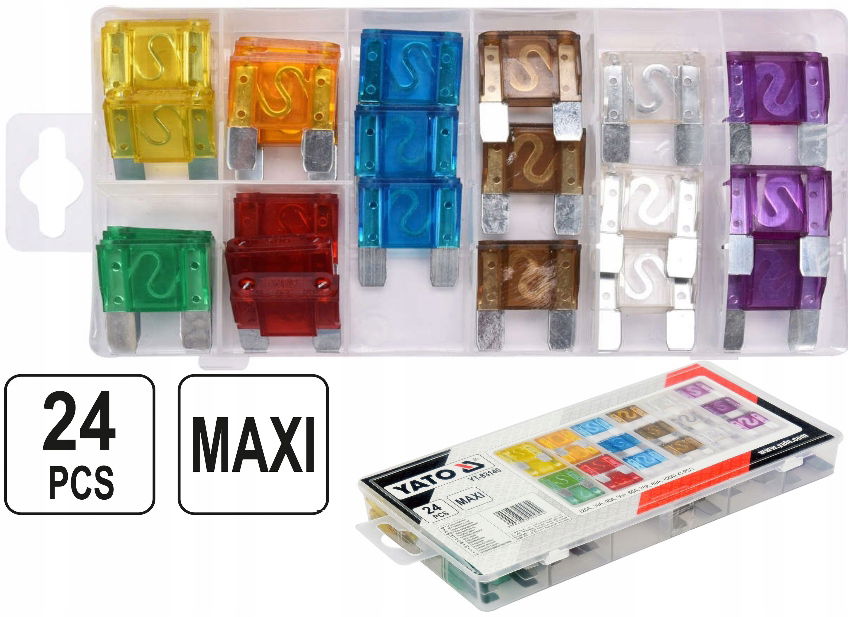 Zestawy bezpieczników płytkowych chroniących instalacje elektryczne w autach przed uszkodzeniem spowodowanym nadmiernym natężeniem prądu. Stosowane m.in. do kompresorów, pompek elektrycznych, prostowników, rozdzielaczy gniazd. Zapakowane w poręczne kasetki.