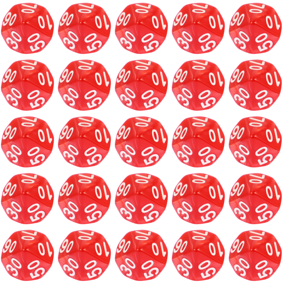 Komplet kości dziesięciościennych numerowanych 00-90. Niezwykle wysoka jakość odlewu, precyzja żłobienia oraz malowania numerów czynią z nich podstawowy wybór dla wielu graczy, zarówno początkujących, jak i zaawansowanych.