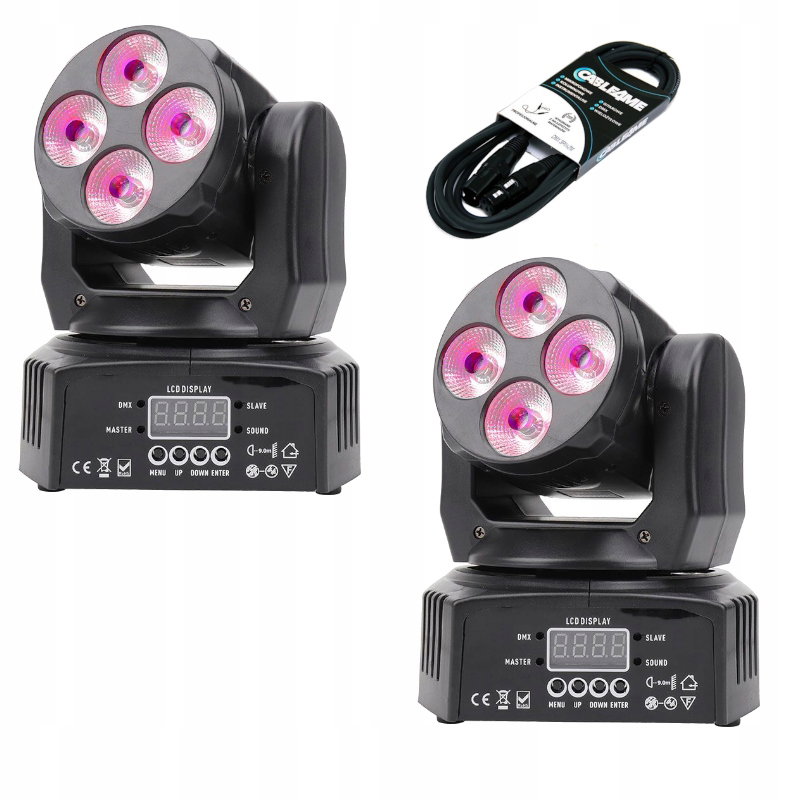 Zestaw 2 szt NN 408 WASH 4x8W RGBW minigłowica ruchoma LED wraz z kablem DMX połączeniowym 3m oraz Laser kropkujący