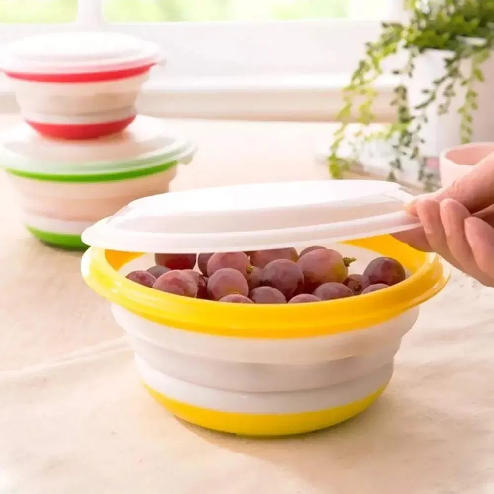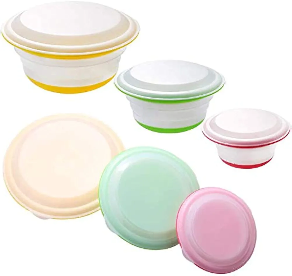 ✔️W zestawie kolorowe, dobrze wyglądające pudełko, 1 zestaw 3 szt; trzy wielofunkcyjne rozmiary (grube: 19 cm i 1400 ml, średni: 16 cm i 750 ml, mały: 13 cm i 400 ml); tylko 3 cm wysokości po złożeniu, idealny na lunch, przekąski, przechowywanie resztek lub do poręcznego przygotowania posiłku.