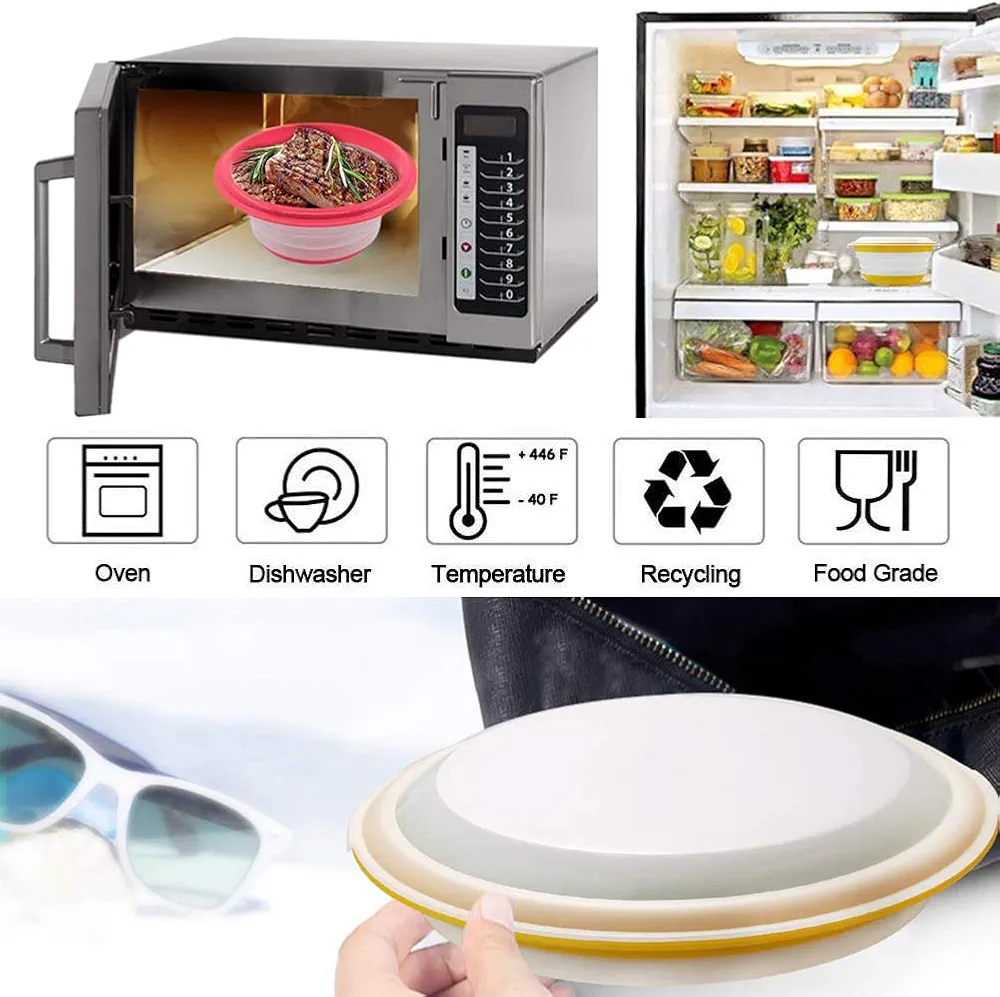 ✔️Wykonana z wysokiej jakości grubego silikonu, miska jest solidna i odporna na ciepło, nie tylko całkiem dobrze przechodzi przez kuchenkę mikrofalową, ale także może wytrzymać niskie temperatury i wysokie temperatury w ekstremalnych warunkach pogodowych; zatrzaski na pokrywkach tworzą hermetyczne uszczelnienie próżniowe, które zapewni żywność bezpiecznie i świeższą dłużej.