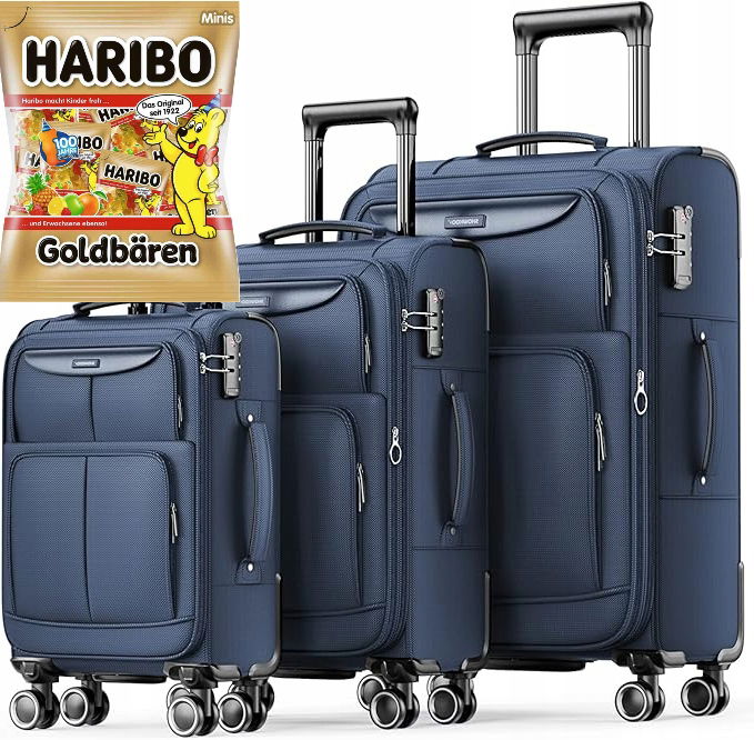 SHOWKOO Zestawy Bagażowe 3 Częściowe Softside Rozszerzalne Lekkie Trwałe Podróżne Zestawy Walizek Podróżnych Podwójne Kółka Obrotowe Zamek TSA, Głęboki Niebieski