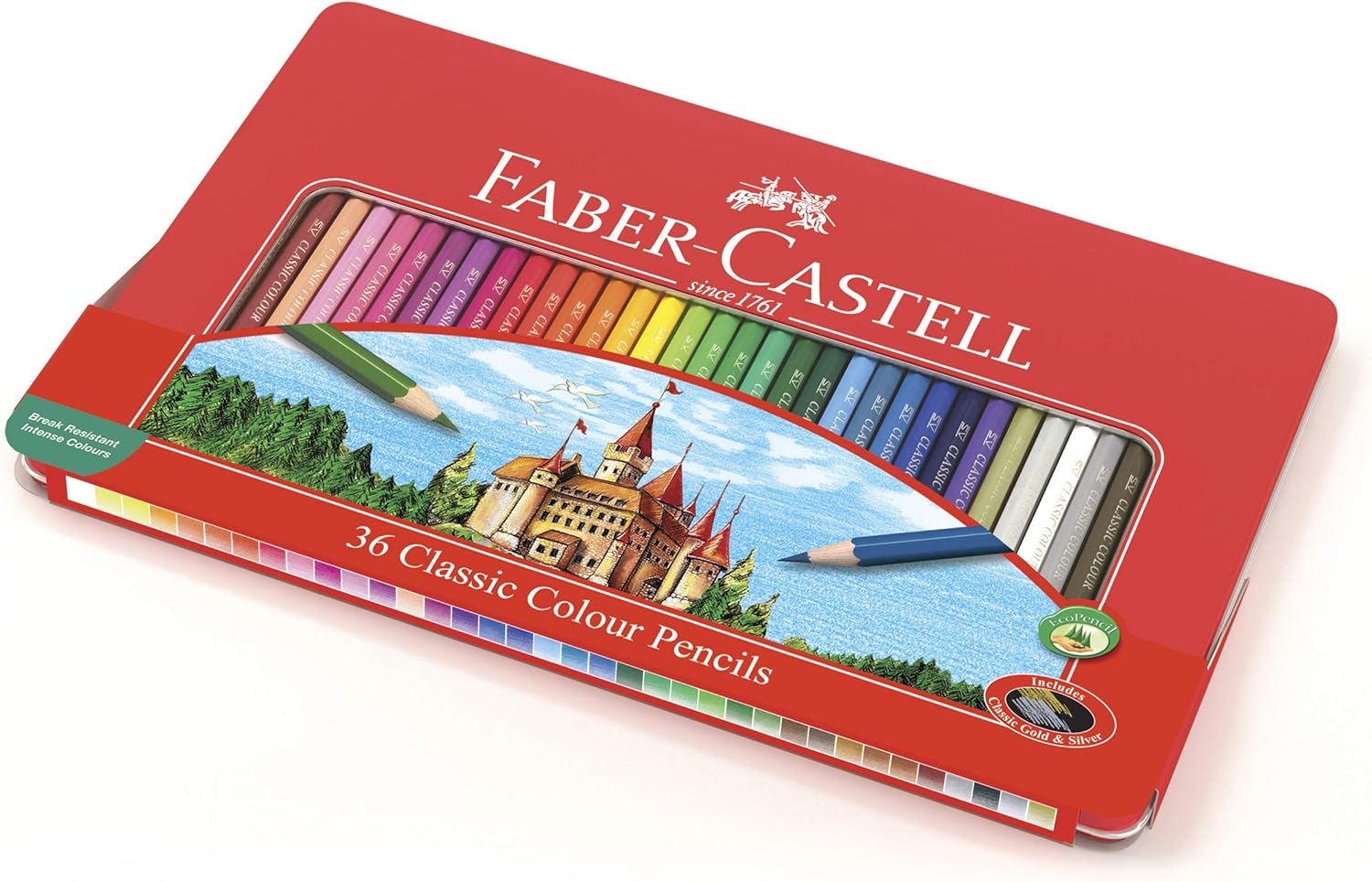 Zestaw 36 szt. klasycznych kredek kolorowych Faber-Castell w metalowym etui