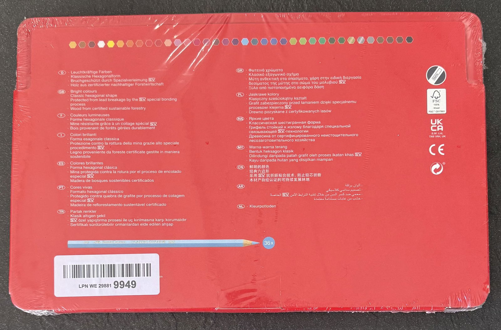 36 żywych kredek – w tym mocno napigmentowane, łatwe do blendowania i odporne na osypywanie się kolory! Kredki znajdują się w solidnym metalowym opakowaniu, idealnym do tworzenia w podróży.