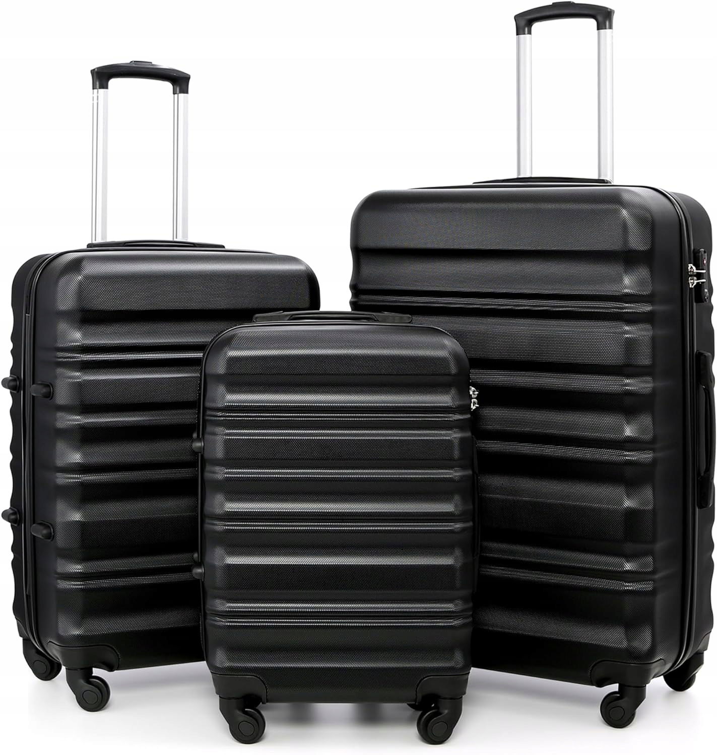 COOLIFE Walizki podróżne z twardą obudową, z zamkiem TSA i 4 kółkami, walizki na kółkach. Zestaw 3 sztuk walizek - duża ; średnia ; mała kabinowa.