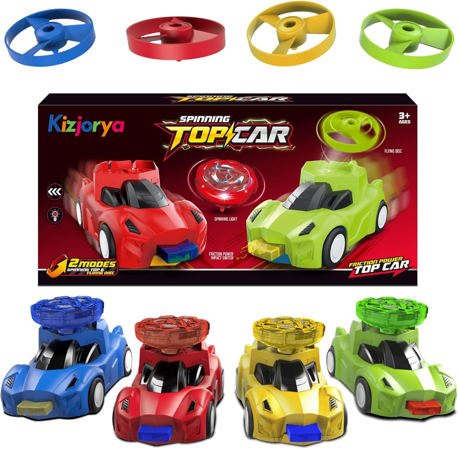 IDEALNY PREZENT DLA DZIECI: 4-pak mini wyścigówek z migającymi bączkami zapewnia wielu graczom opcje w jednej grze, dzięki czemu jest wszechstronną i ekscytującą opcją na prezent. Idealny wybór na prezent dla dzieci w wieku 3-5, 4-6 lat.