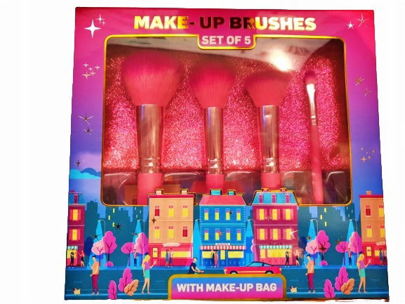 Zestaw 4 Pędzli Do Makijażu Make-up Z Kosmetyczką z brokatem różowe