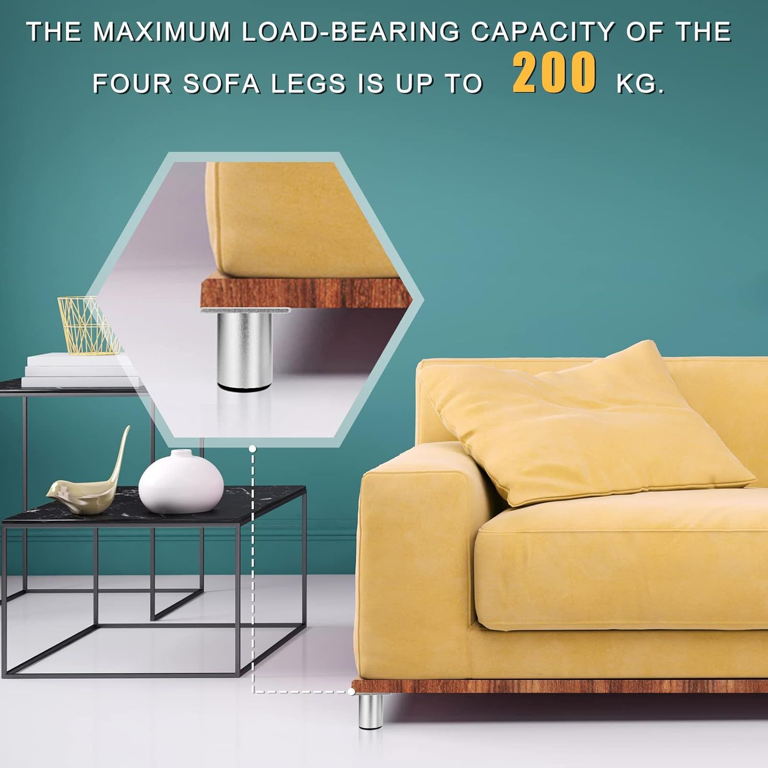 - Nośność jednej nóżki wynosi 50 kg, dla 4 zatem 200kg