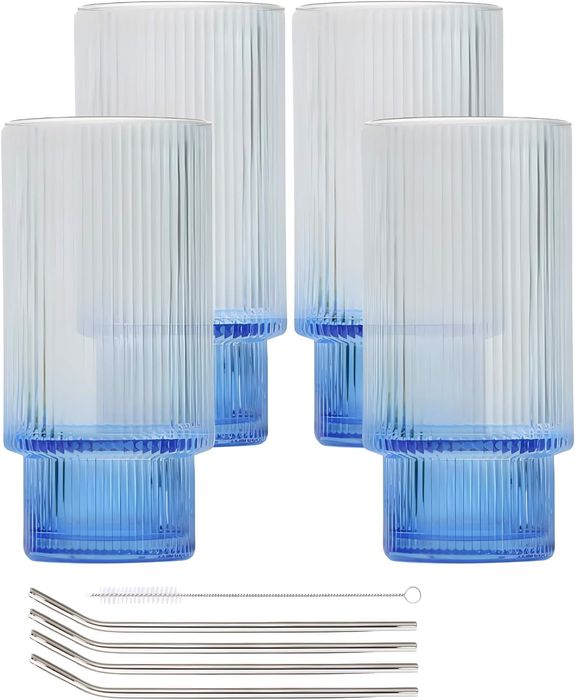 Zestaw 4 szklanek do napojow z metalowymi somkami