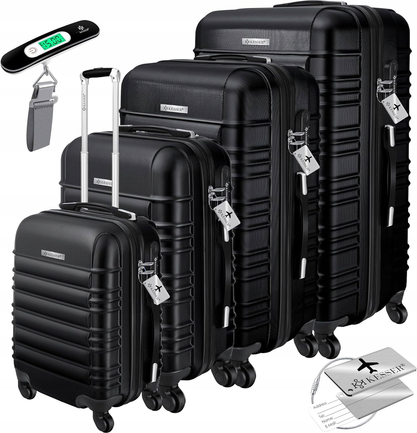 KESSER® 4szt. Walizka twarda walizka twarda walizka podróżna zestaw walizka na kółkach waga bagażowa + przywieszka bagażowa walizka na kółkach zamek 4 kółka ABS twarda skorupa teleskopowa rączka