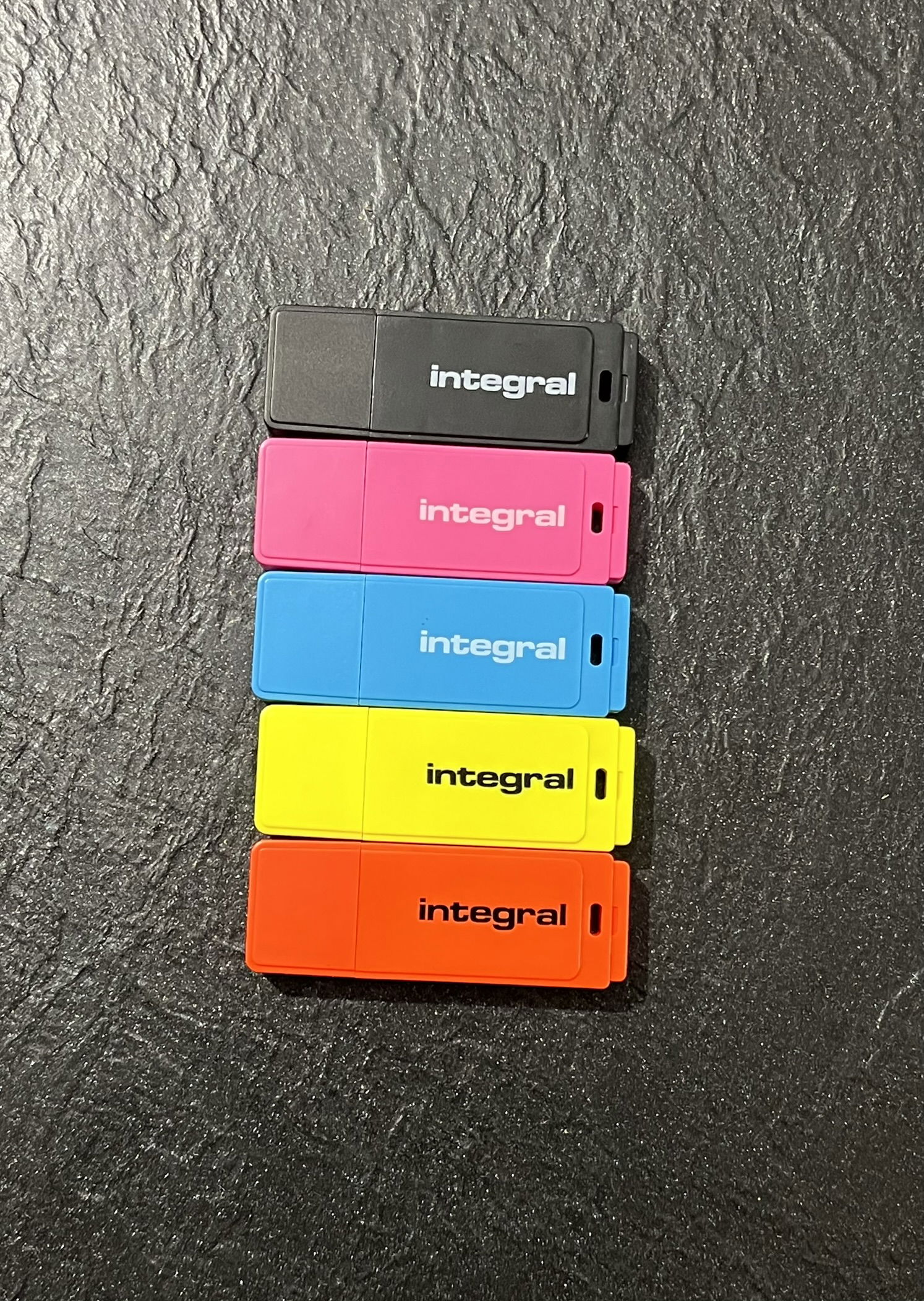 Zestaw 5 dysków flash USB 2.0 Neon Integral 64 GB (czarny/różowy/żółty/pomarańczowy/niebieski)