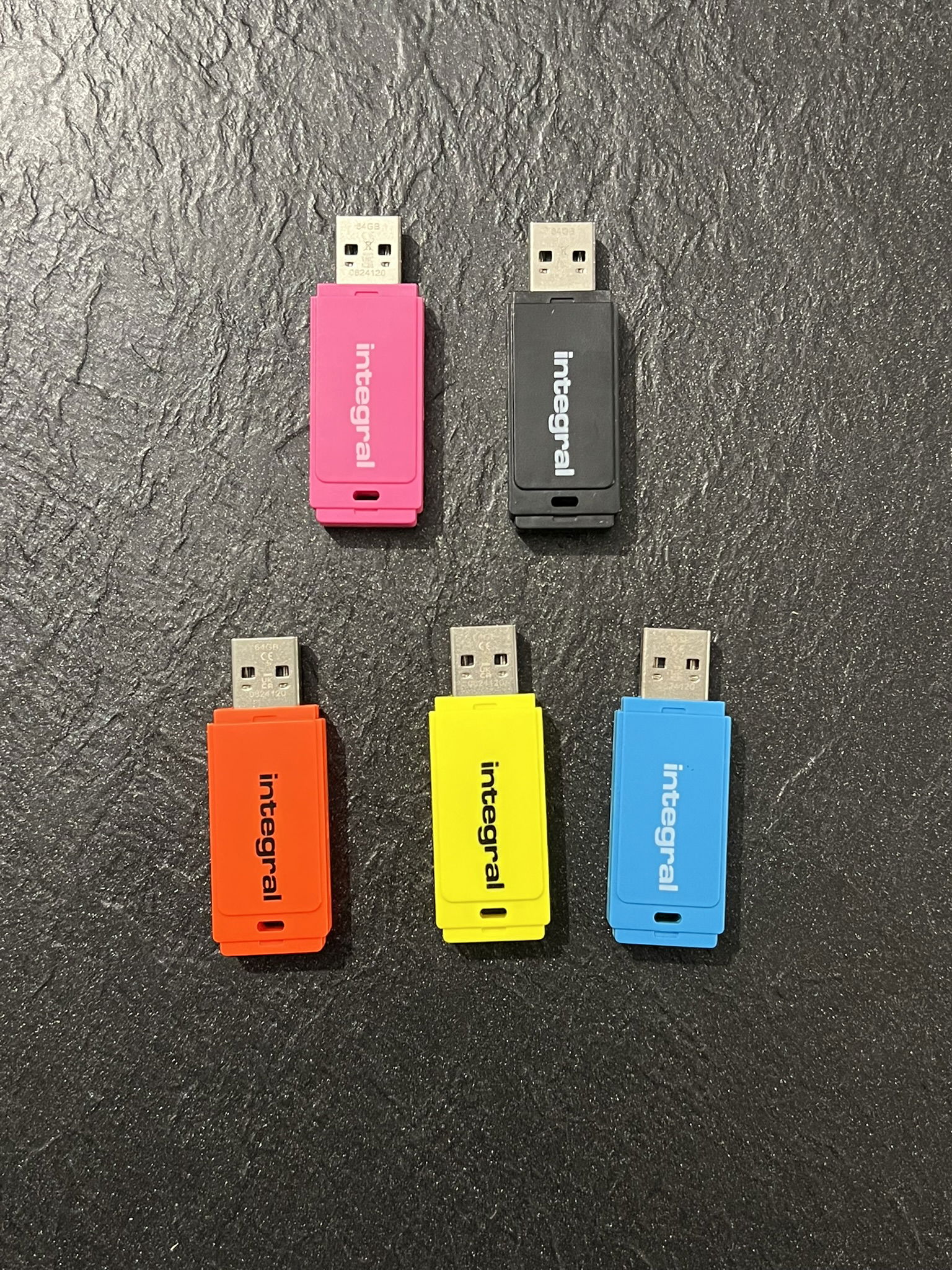 Jedyna sztuka Zestaw 5 dysków flash USB 2.0 Neon Integral 64 GB