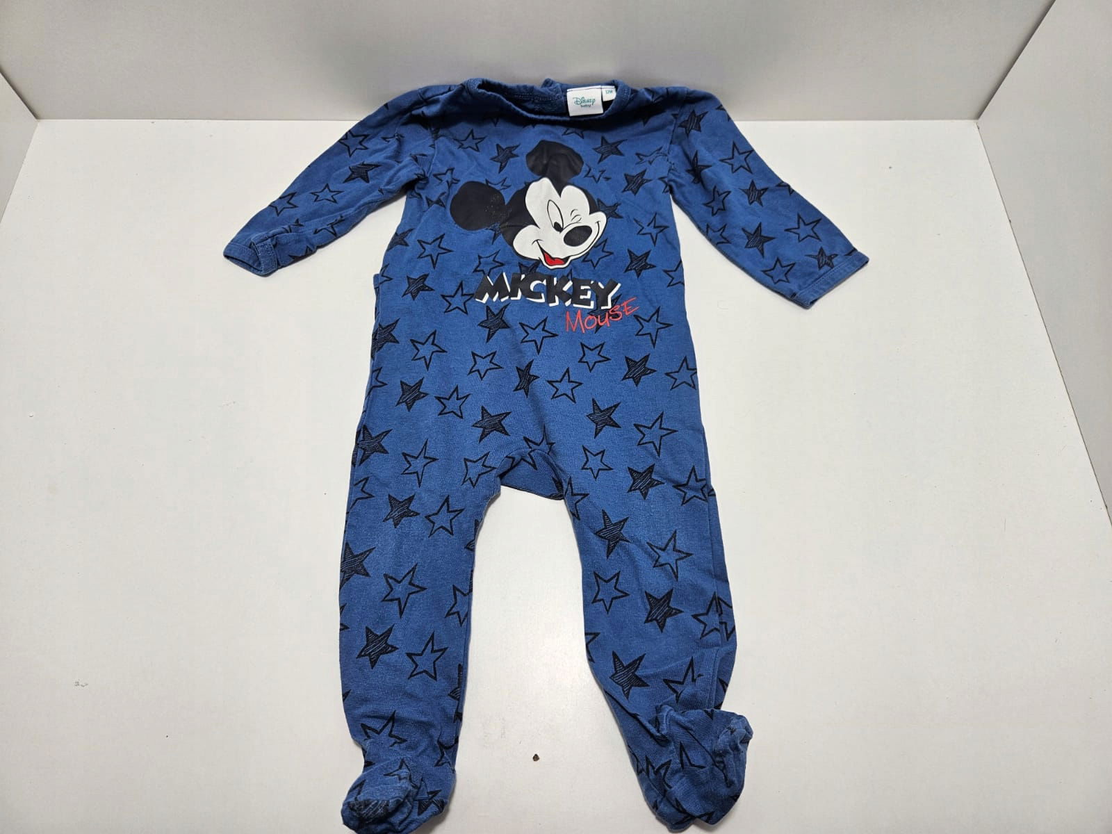 Wysokiej jakości pajac niemowlęcy wykonany z miękkiej i delikatnej dla skóry dziecka bawełny. Oryginalny na licencji. Na całej długości zapinany na napy (zatrzaski). Pajacyk z wizerunkiem z bajki - Myszka Mickey - Miki.