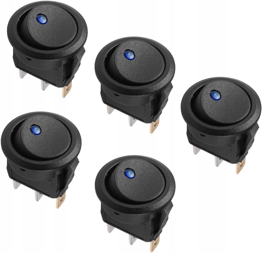 5x okrągły przełącznik kołyskowy, miniaturowy 2-biegunowy przełącznik kołyskowy włącz/wyłącz, z samoblokującym okrągłym przełącznikiem, blokujący się z samoblokującymi okrągłymi przełącznikami, do samochodów osobowych, kamperów, ciężarówek, łodzi i jachtów (niebieski)