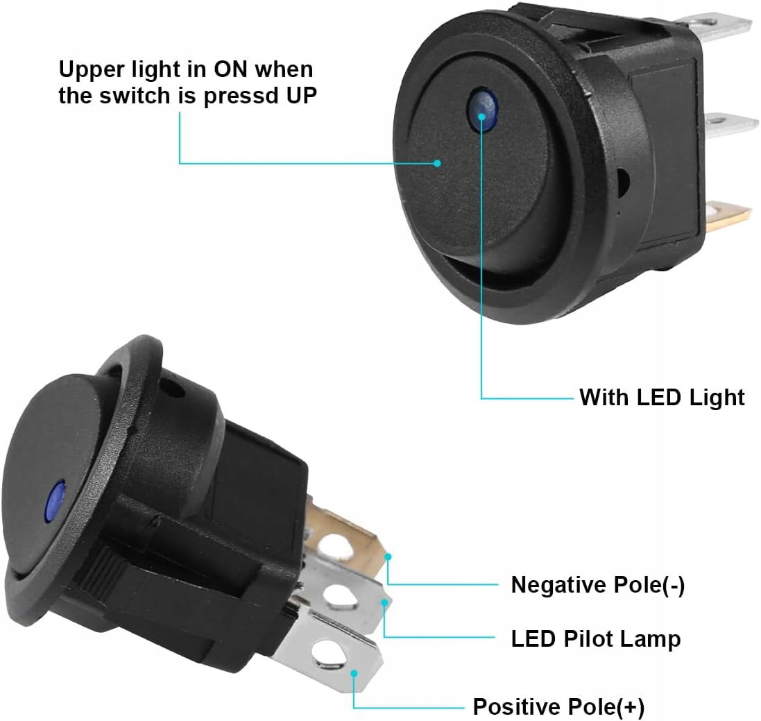 - 【Wysoka wydajność】: Okrągły przełącznik kołyskowy do oświetlenia LED wykonany jest z wysokiej jakości tworzywa sztucznego i miedzi. 100% nowy, wysokiej klasy, trwały. Służy do sterowania różnymi urządzeniami elektrycznymi w samochodach, zapewnia moc i stabilność działania. To najlepszy wybór, gdy potrzebujesz przełącznika kołyskowego.
