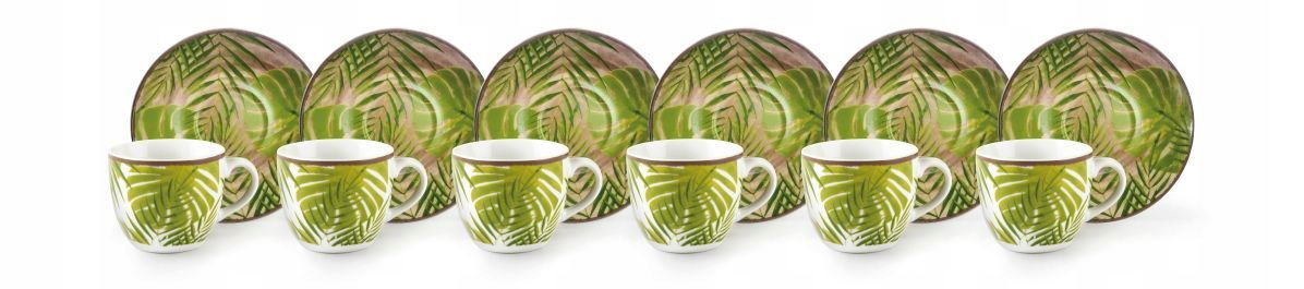 Zestaw 6 filiżanek ze spodkiem, liśćmi paproci, porcelaną, 90 ml