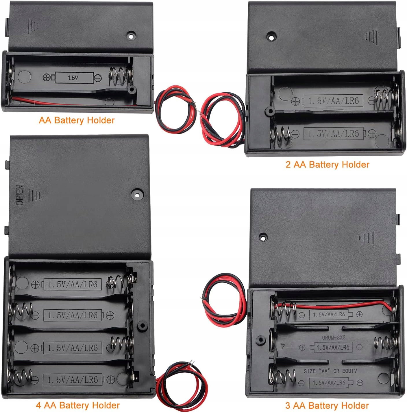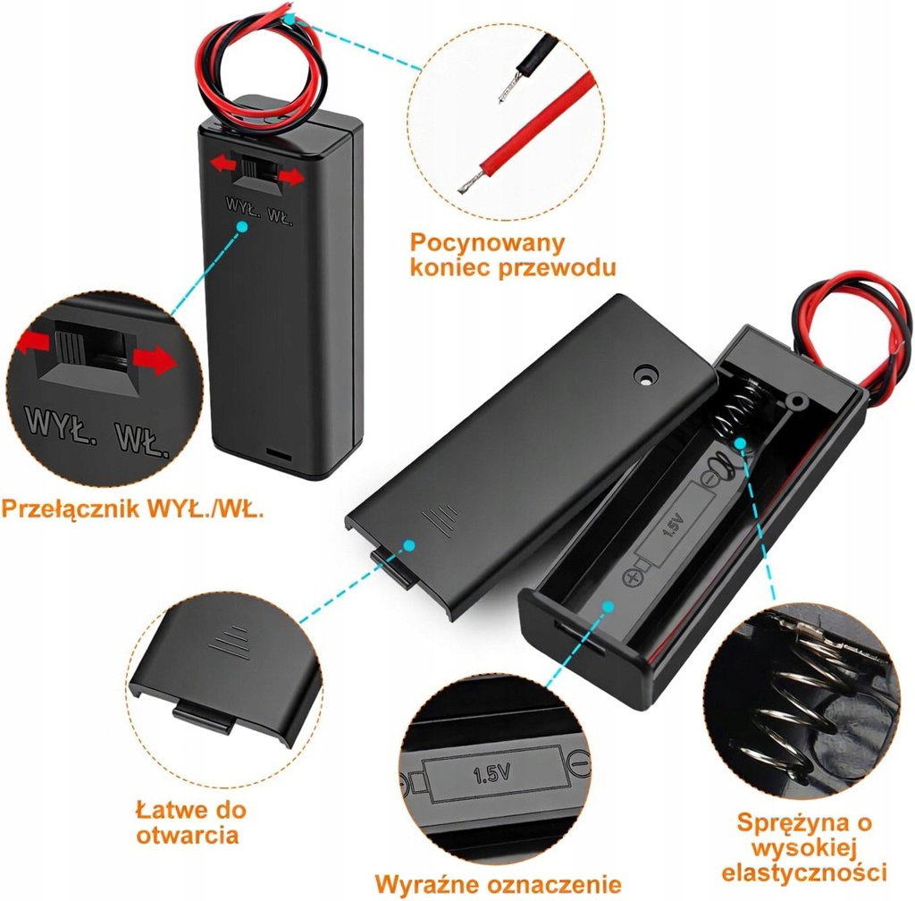 Szerokie zastosowanie: Te koszyki na baterie są idealne do mikrokontrolerów płyt Arduino, projektów ledowych, zabawek, również wymiany uszkodzonego koszyka baterii w wielu urządzeniach elektronicznych.
