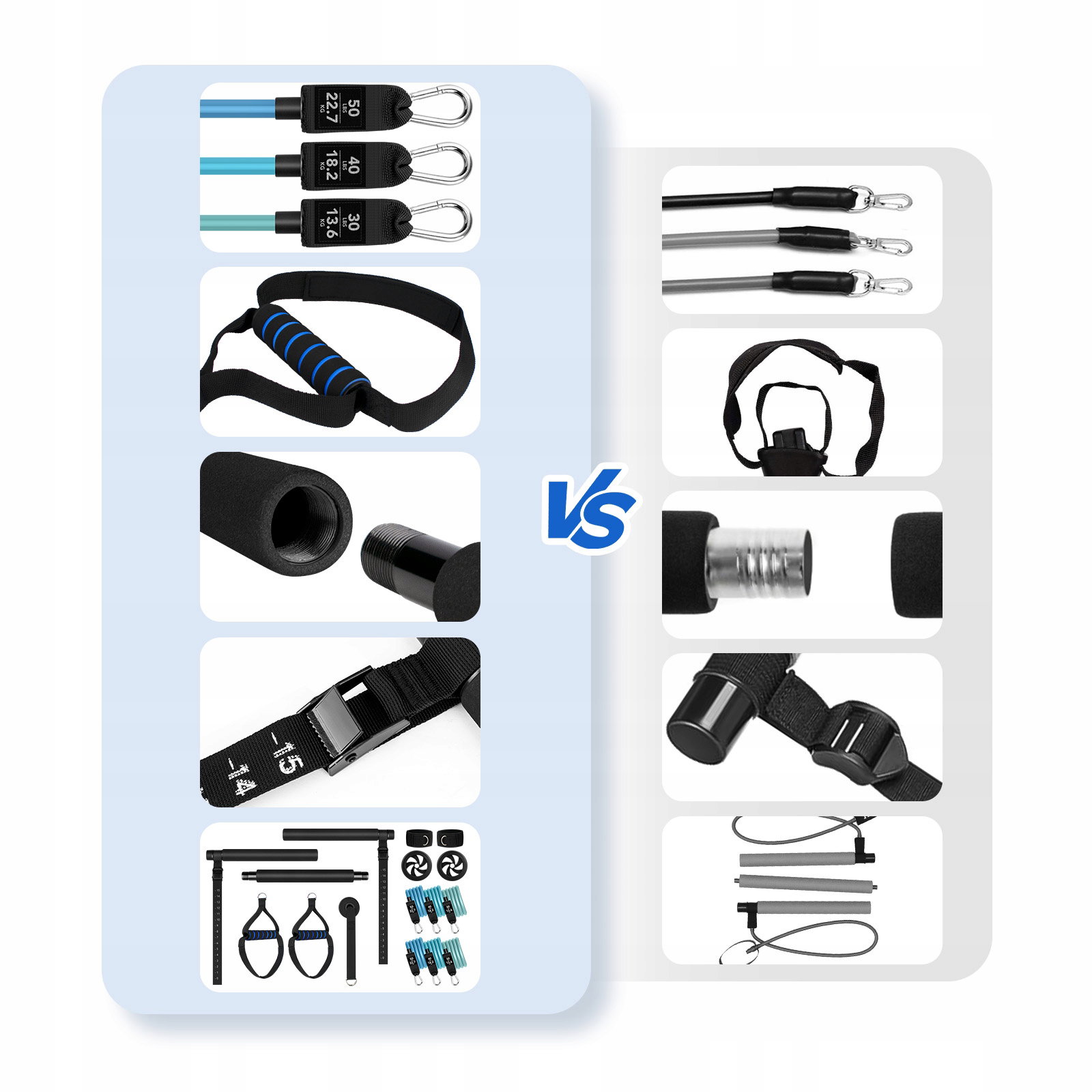 - Nowo ulepszone taśmy fitness: Taśmy oporowe z drążkiem mogą pomóc w wykonywaniu różnych ćwiczeń. Firma Highsam wprowadziła nowe materiały lateksowe, aby opaski fitness były trwalsze i bardziej elastyczne. Taśmy oporowe o wadze 20 funtów, 25 funtów i 30 funtów można łączyć w celu uzyskania oporu od 20 funtów do 150 funtów, aby zaspokoić potrzeby różnych ćwiczeń. Każda opaska oporowa ma dwuwarstwową strukturę, która zapobiega rozdarciu i zapewnia dłuższą użyteczność.