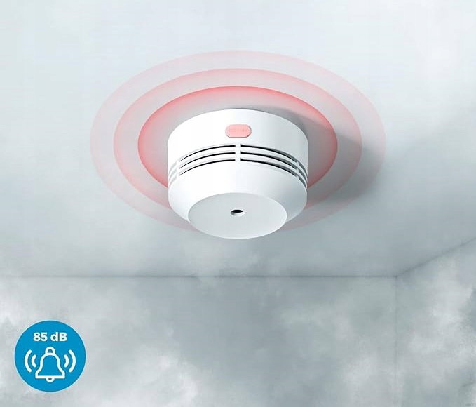 Alarm dźwiękowy 85 dB: W przypadku wykrycia dymu, czujnik uruchamia alarm o głośności 85 dB, co zapewnia wyraźne ostrzeżenie o zagrożeniu. Dźwięk jest wystarczająco głośny, aby dotrzeć do Ciebie nawet w innych częściach domu, co daje Ci czas na podjęcie odpowiednich działań.