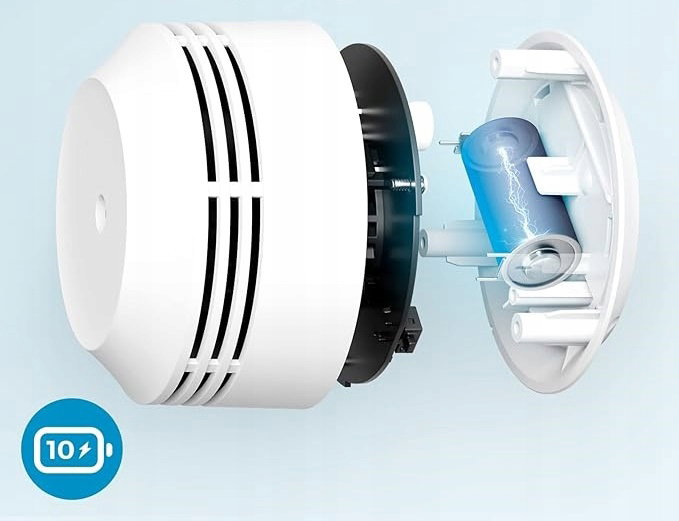 10-letnia bateria: Zestaw wyposażony jest w czujniki dymu, które zawierają szczelną baterię o długowieczności 10 lat. Oznacza to brak potrzeby wymiany baterii przez całą dekadę użytkowania, co zapewnia wygodę i bezpieczeństwo. Co więcej, bateria nie wymaga żadnej konserwacji, a jej długotrwałość oznacza, że system ochrony będzie działał niezawodnie nawet w przypadku braku prądu.